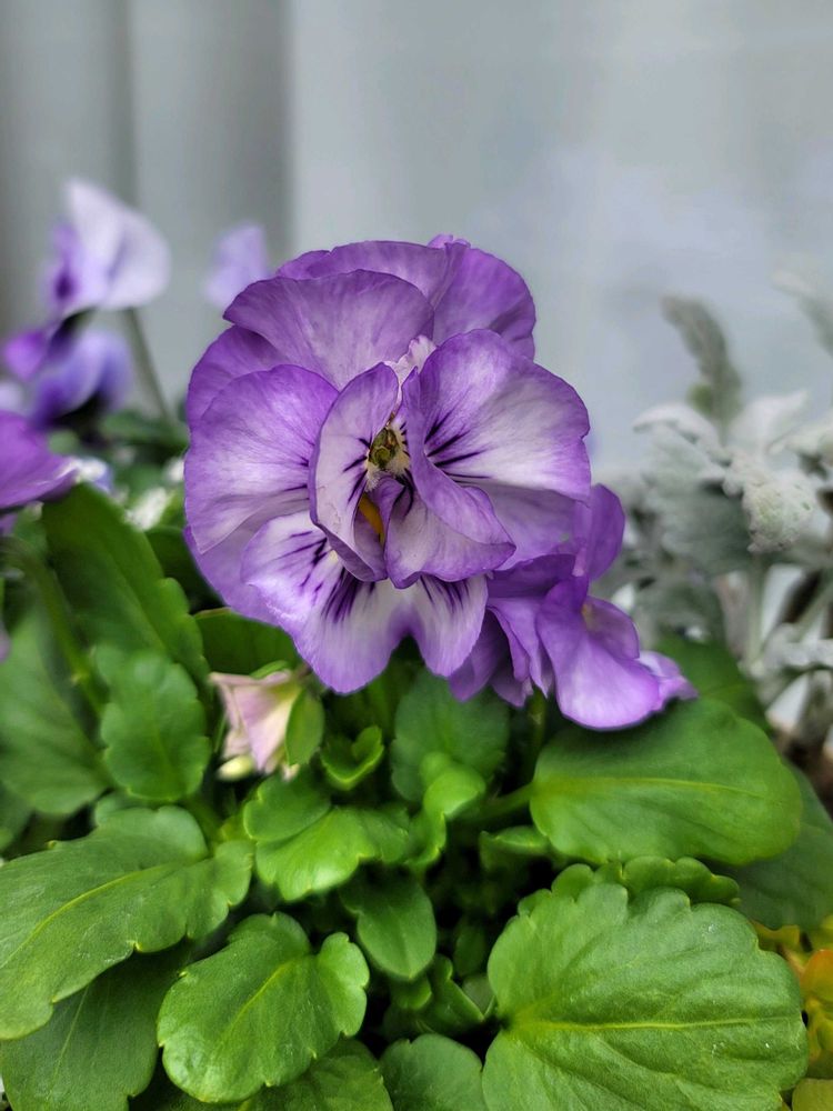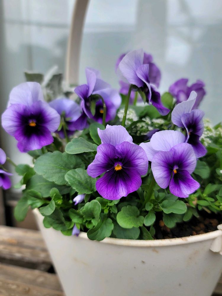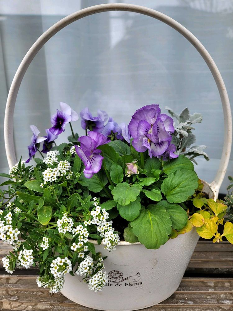 八重咲パンジー『ラブリーシュシュ』はポツポツと💜ツートンの『ビオラ』は沢山🤍💜咲きだしてきました✨🪴