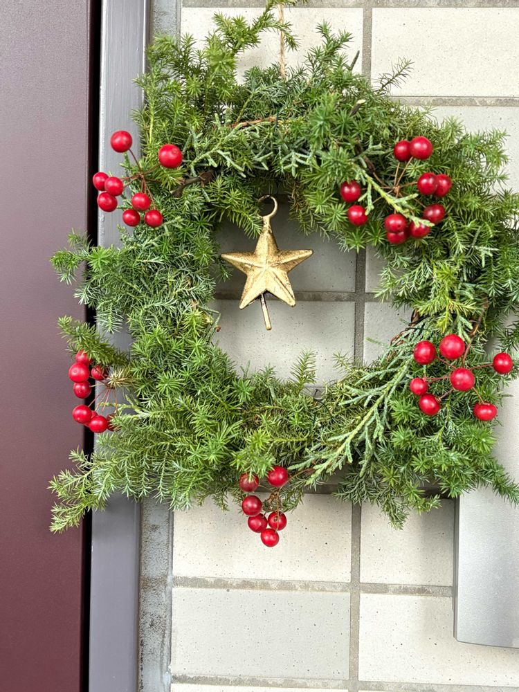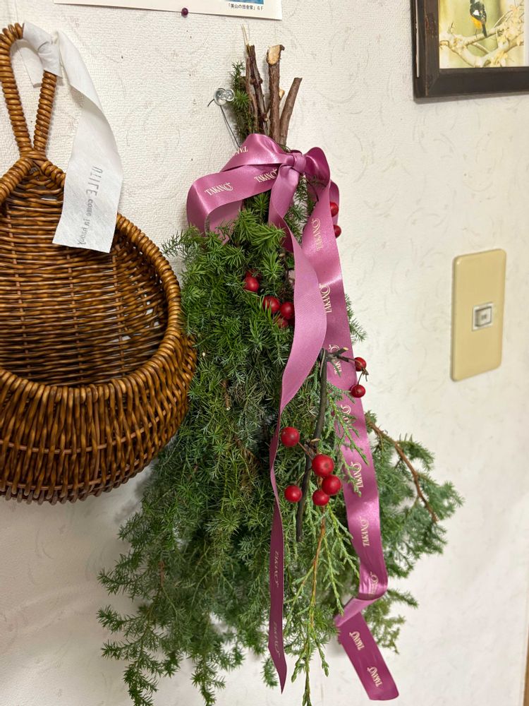 リースセットなので自分で枝をカットして巻いていきます!ちょっとスマート過ぎたかな?残った枝はスワッグにして🎀付けて見ました💓🎄