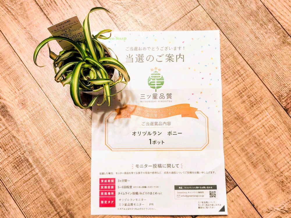 何種類かの観葉植物の中から希望商品を選べたので今回申し込んだのがオリヅルランのボニー🌱ちゃん🥳