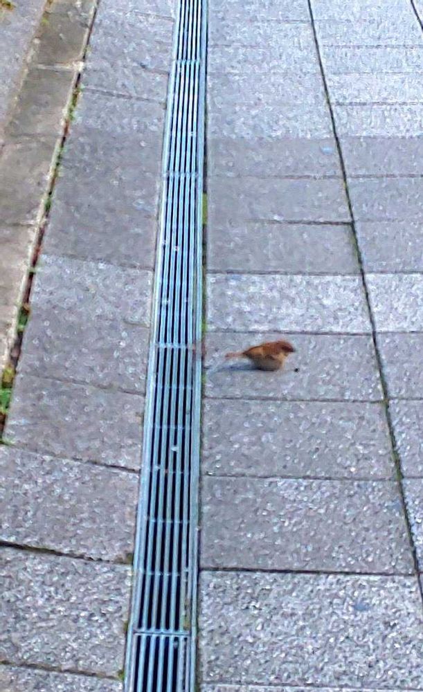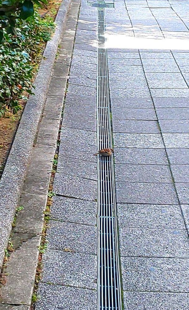 ②椿の植え込みの前の道でチュン発見!👀👉️ビシッ