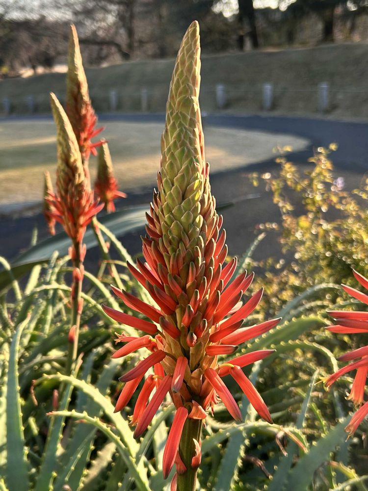 早春や晩秋、伊豆の海岸近くでは赤い花を咲かせたキダチアロエを良く見ました。