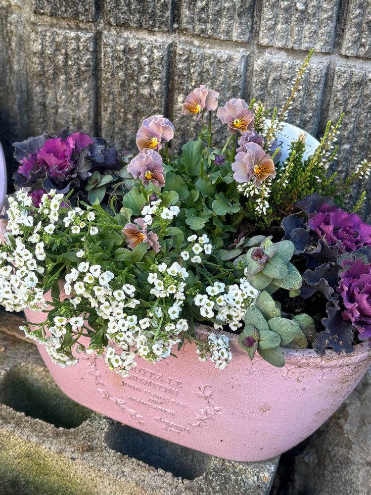てるてる坊主さんの玄関アプローチ,パンジー・ビオラ,フリル咲きビオラ パスフリの投稿画像