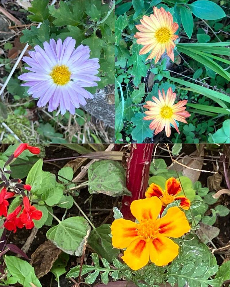 切った後の残りのキクと溢れたねからなので、今 咲いてます😊