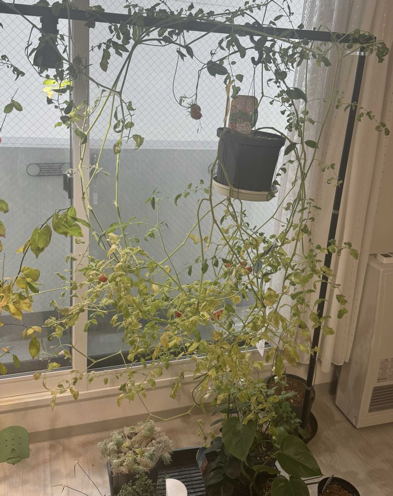 年末大掃除の一環としてミニトマト片付けたんだけれども、一部サンパラソルが巻き付いて支柱代わりにしてる部分があり、どうしたものか