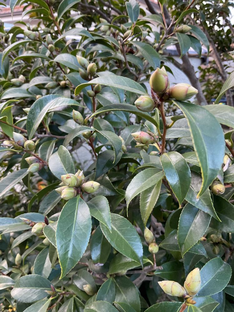 3枚目、もう〜 蕾が しっかり付いて来ました、3月上旬から 咲き出す 春の椿🌺です‼️
