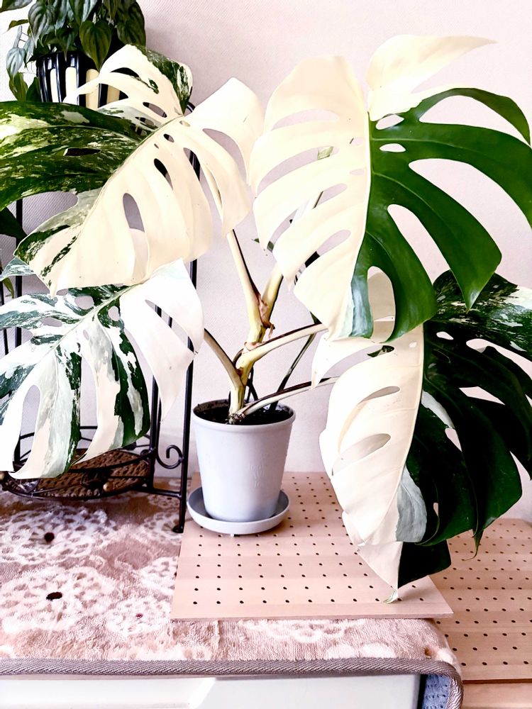 我が家にも斑入りのモンステラ(ボルシギアナ)おりますが…、白いところがひしゃげたり焼けたりなかなか難しいなと感じております🥺