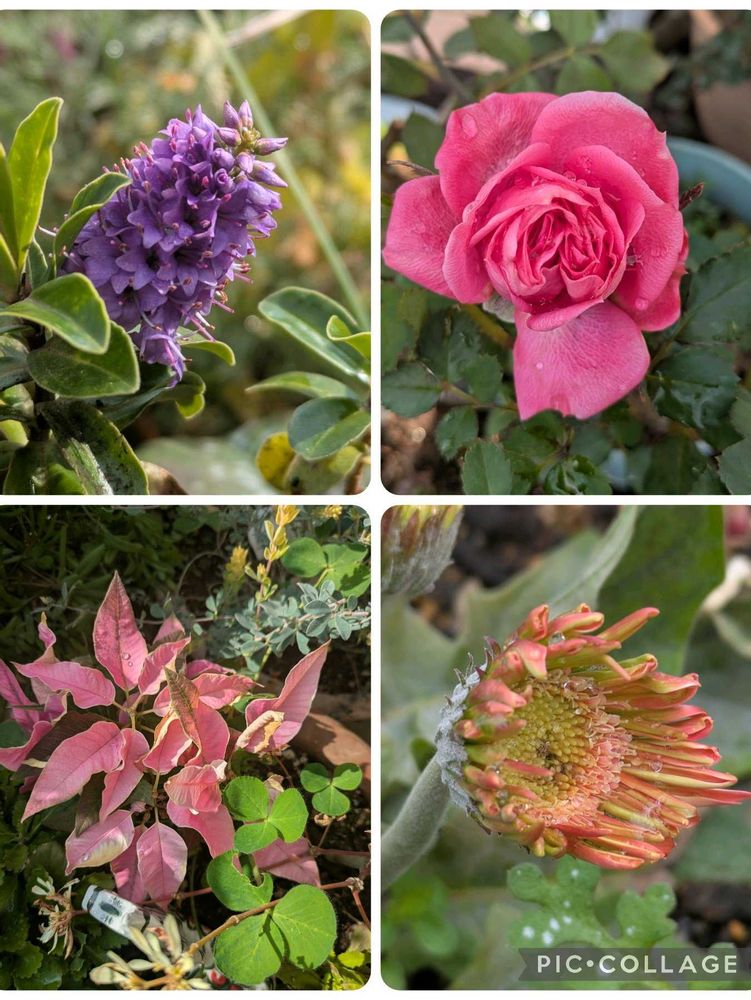 ガーベラ、ヘーベ、ポインセチア、バラ寒くても、あちこちで咲いています。
