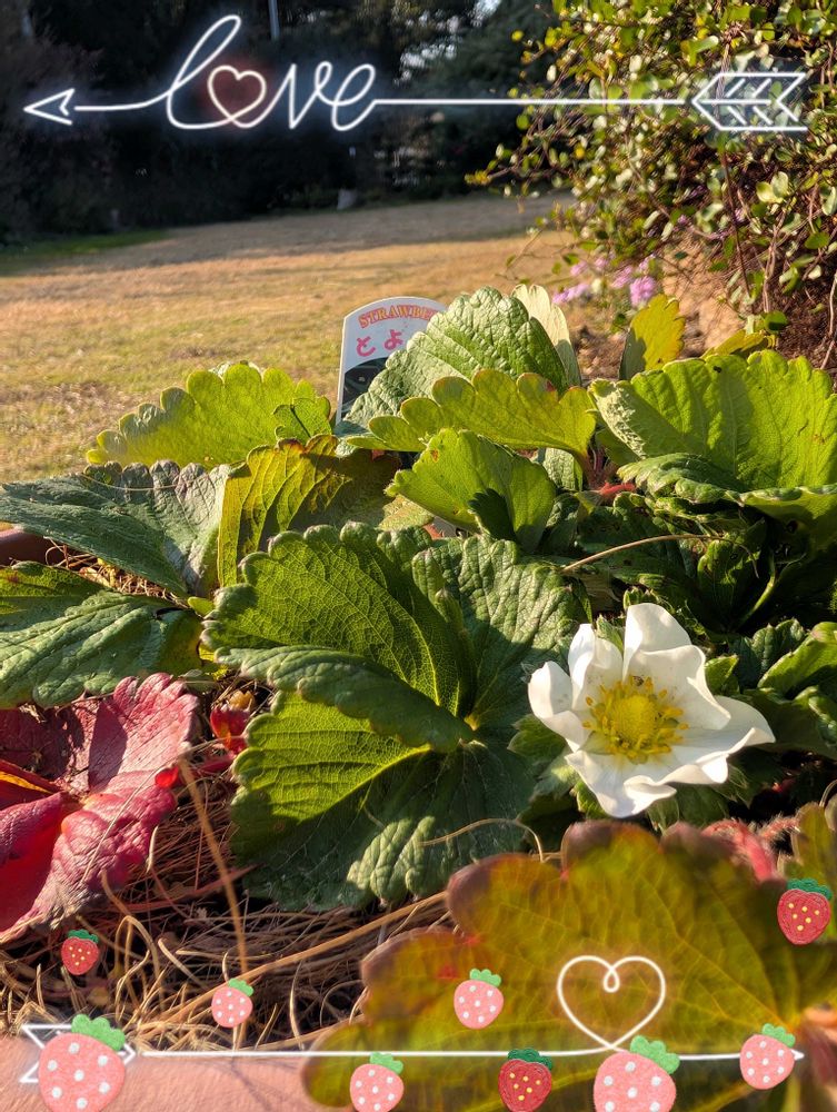 我が家もお花が咲いて、変形の小さい苺がピンク🩷に色付いて来ました。お正月に孫たちが来るので見せてから✂️かな〜😥