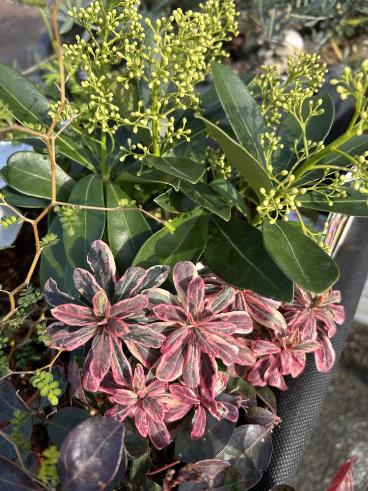 【ユーフォルビア、ミヤマシキミ、カランコエ】