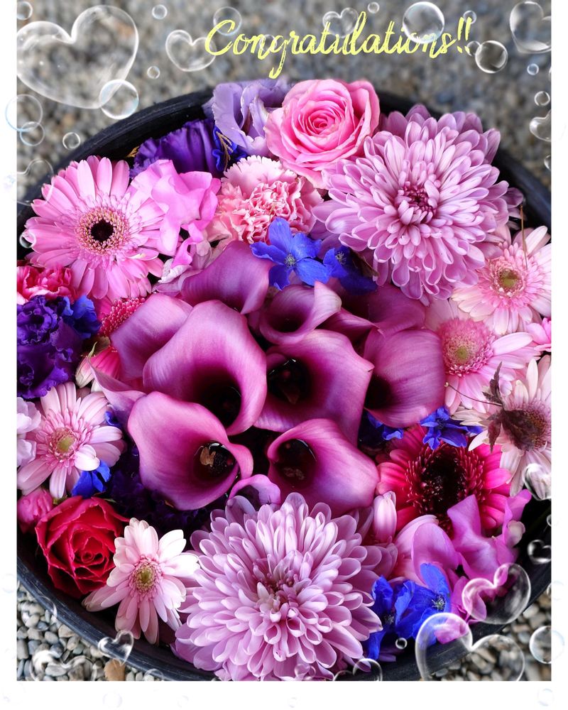 紫、ブルー系の花手水でお祝いさせて頂きます💜🩵