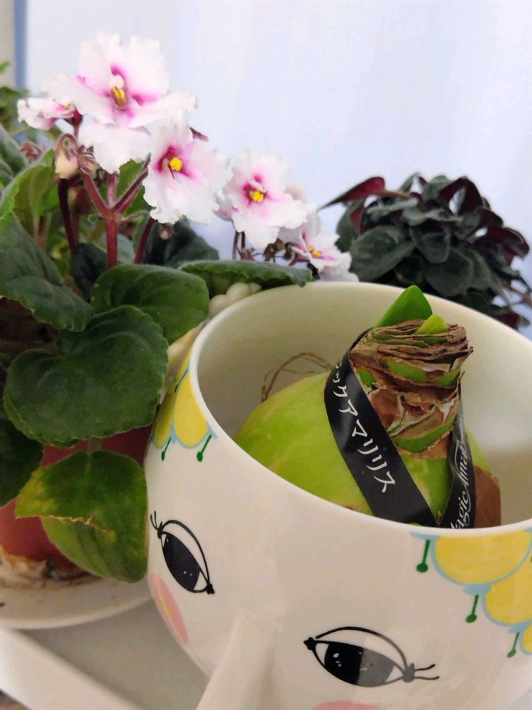 マジックアマリリス、今年もお迎えしちゃいました!エヴァ姉さんに支えてもらいます