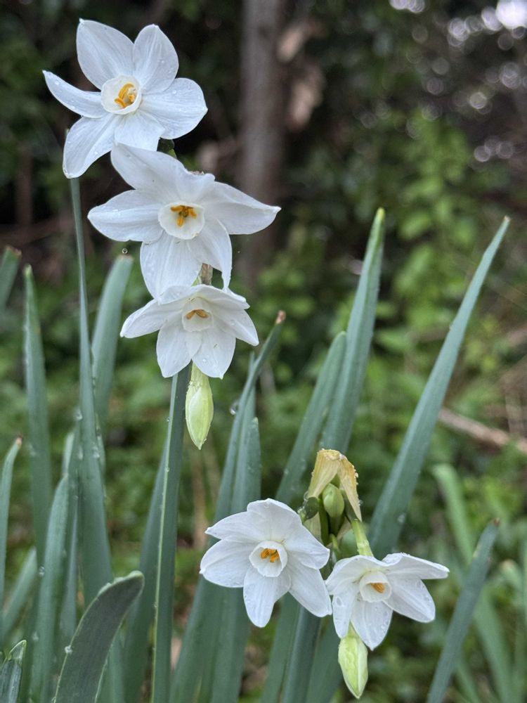 ☔️雨の日ですが フサザキスイセン咲いてます🤍🤍。