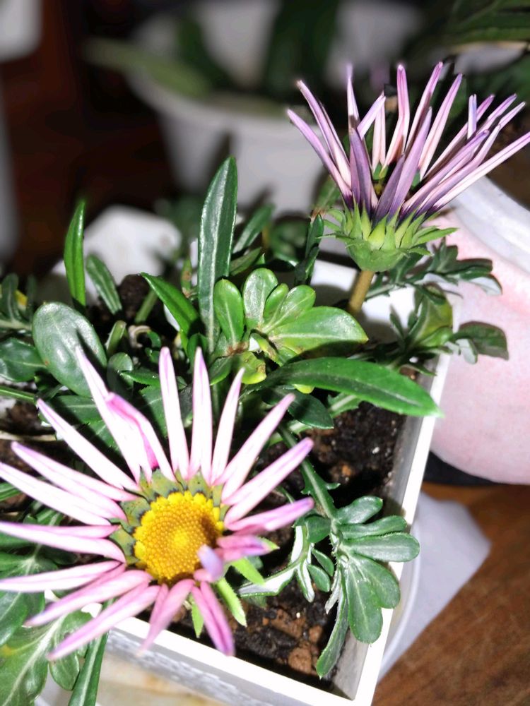 昨日お迎えしたガザニアの蕾が今日開いてくれました💜💜
