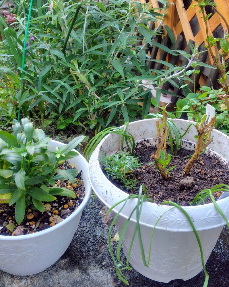 春に向けて小さな苗や株を切り戻して植え直します。