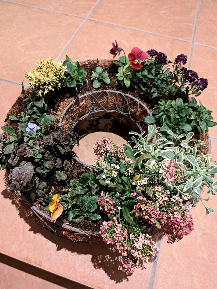 ビオラの挿し芽がちょっと大っきくなってきたから、長男と約束してたリース作りに挑戦しました!