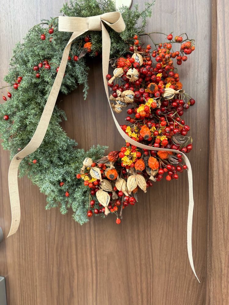 定番のドライリースもいいけど、フレッシュで華やかさのある花のリースもステキ!