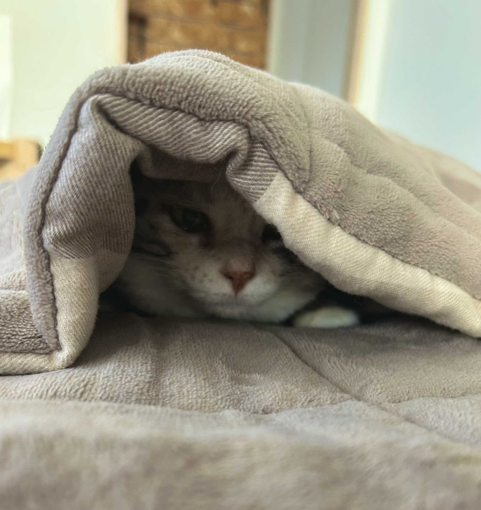 2枚目:寒くなって愛猫もコタツ布団に包まってます。