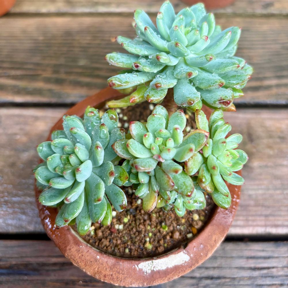ブルーエルフの葉先がやっと紅葉して来ました。