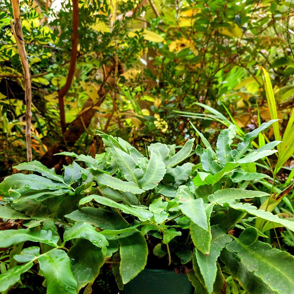 一般的なシダのイメージとは異なり、まるで熱帯植物や人間の手のような**「厚手で幅の広い葉」**が特徴で、ガーデニングやインテリアグリーンとしても人気があります。