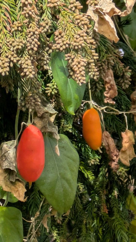 そういえば今年は山に歩いて行かないので、赤いカラスウリ🔴🧡を見ていなかった、と気づきました。夏に黄カラスウリの花らしき物は街中で見たけれど、どうなったかなあ、と気になり出しました。