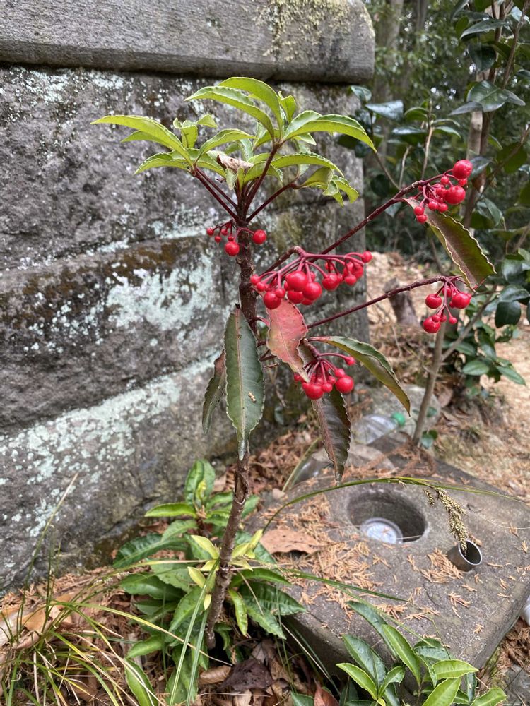 ①センリョウ、②マンリョウ、③ノイバラ、④コウヤボウキ
