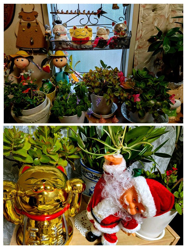 ①冬越しの為にお家に入れた植物と猫ちゃんの貯金箱でニャンニャン祭り参加させて頂きます(=^・^=)🧑🎄