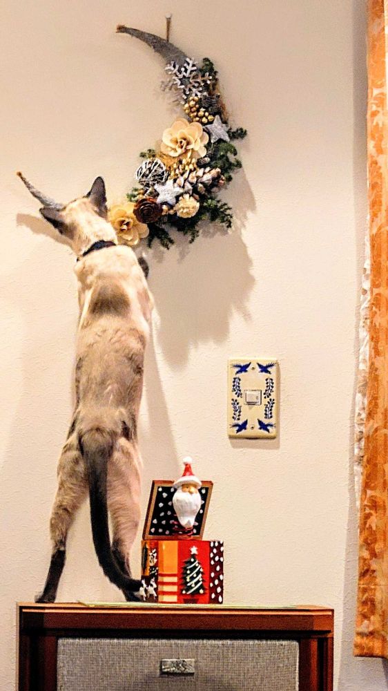 壁のオーナメントをひっぱり