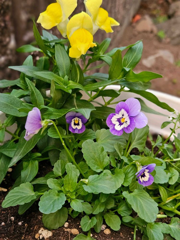 キンギョソウとビオラとアリッサムが1つのポットにまとめて植わってる苗があったので購入‼️
