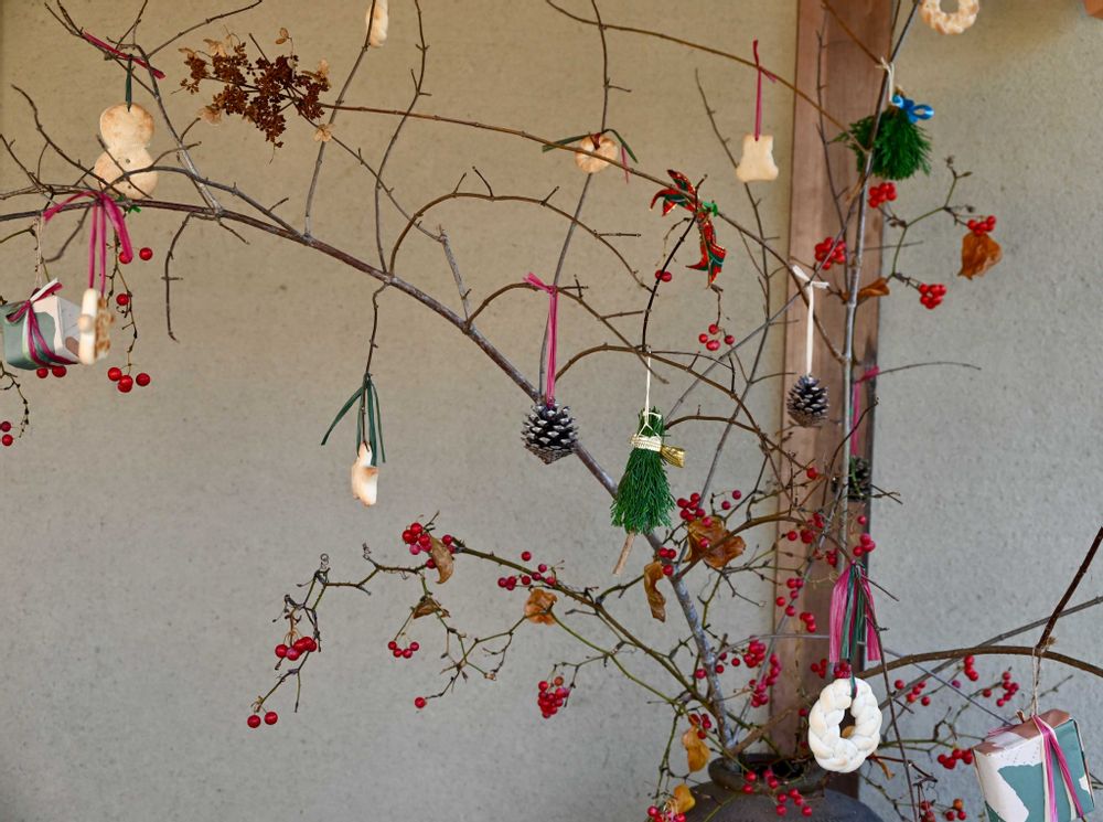 『ノイバラの実と枝』をクリスマスツリーのように手作りで飾っていました✩.*˚