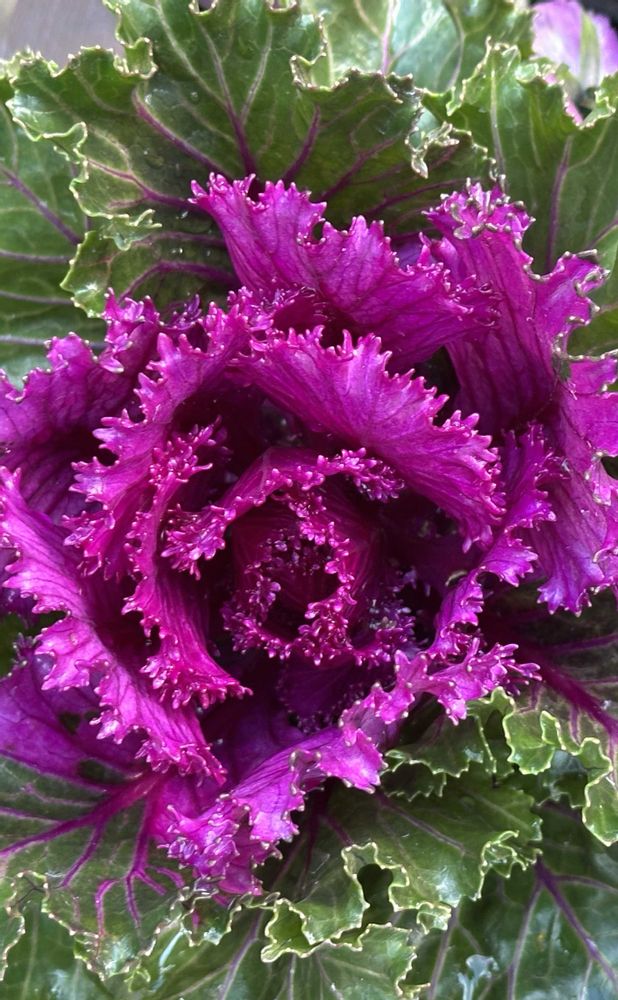 4枚めは、ちりめんのようなハボタンが鮮やかな葉色で膨れ上がるように伸びてきてます。