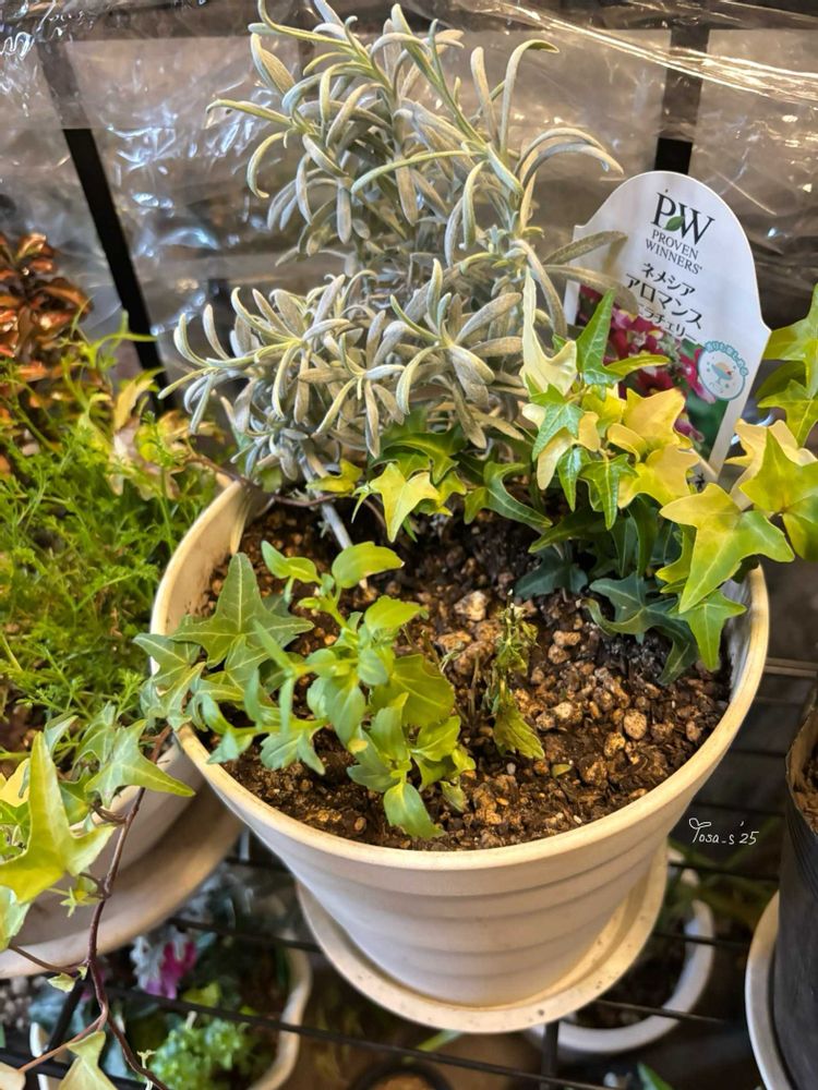 玄関内の寄せ植えネメシア アロマンス バニラチェリー がちょっとまずいかも😓半分枯れてる…