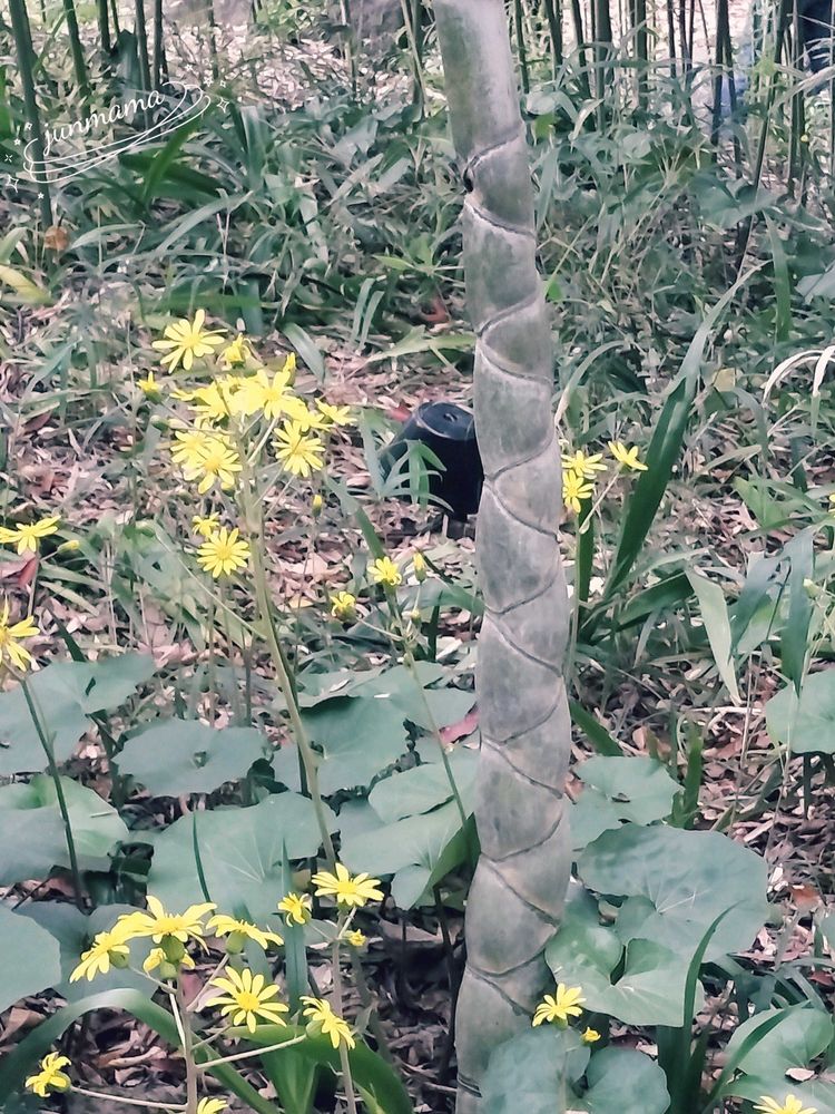 3枚目は好古園「竹の庭」で亀甲竹の周囲に咲くツワブキです