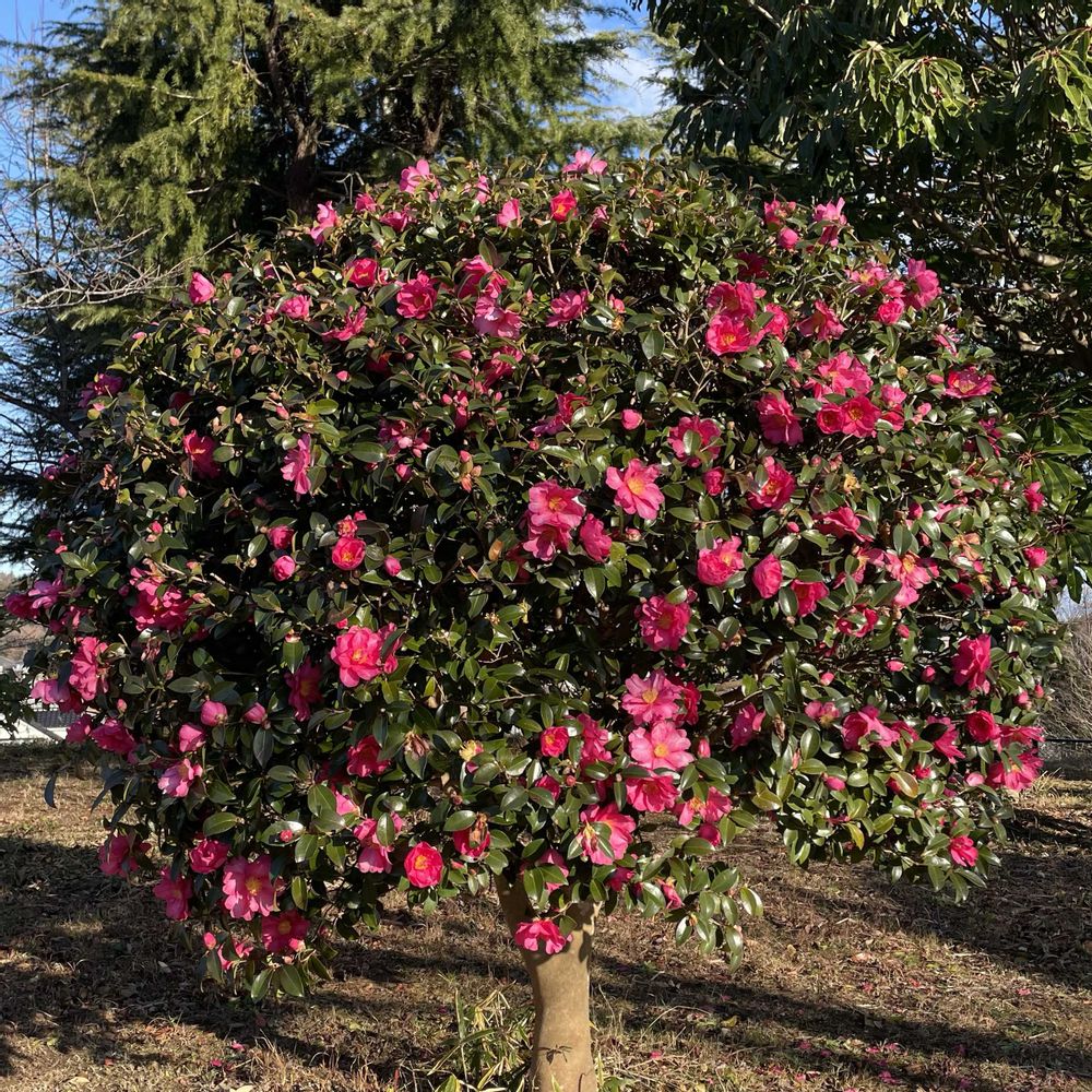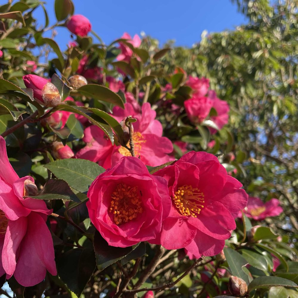 山茶花も元気に咲いて、綺麗に剪定されていますね〜