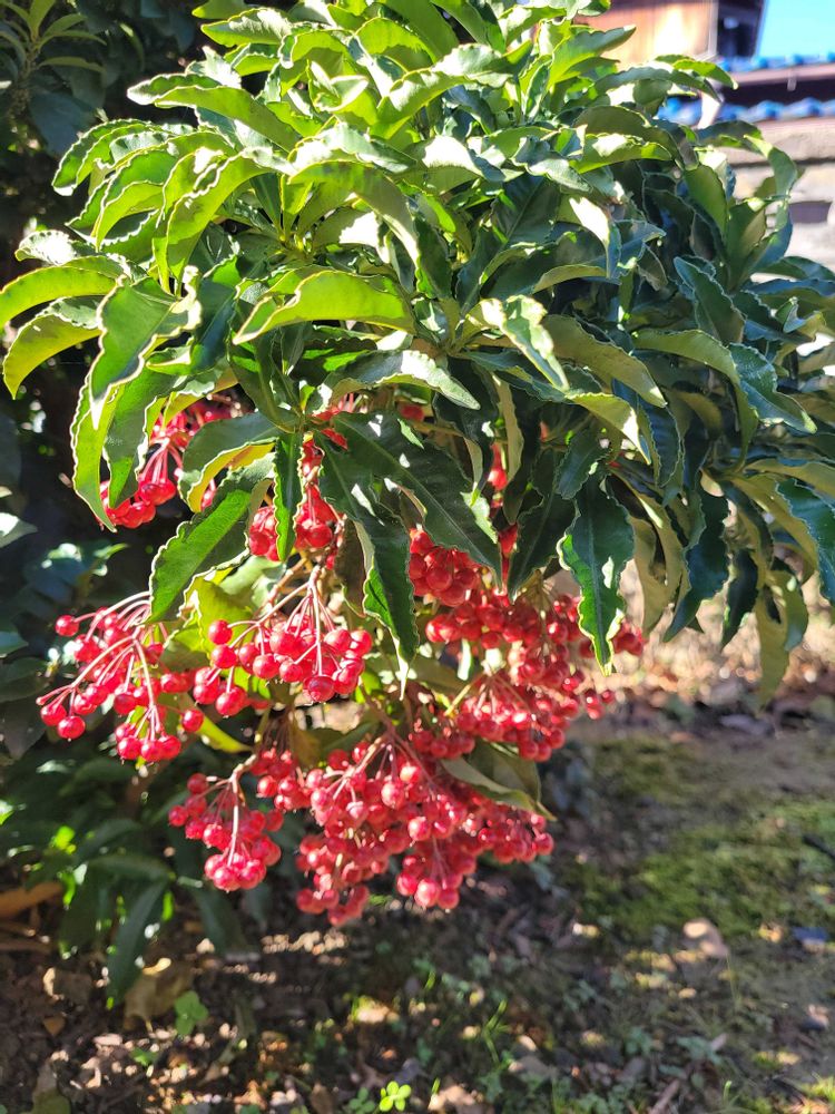 お寺の千両🔴🍃サザンカ❤️🍃