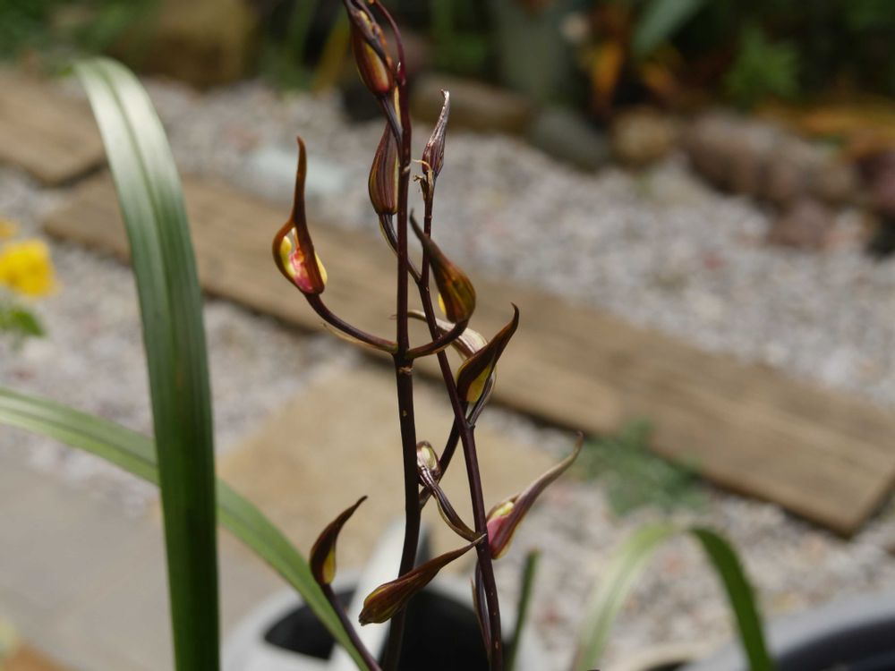 寒蘭を外に出したり、引っ込めたりしています。そろそろ咲きそうです🎶