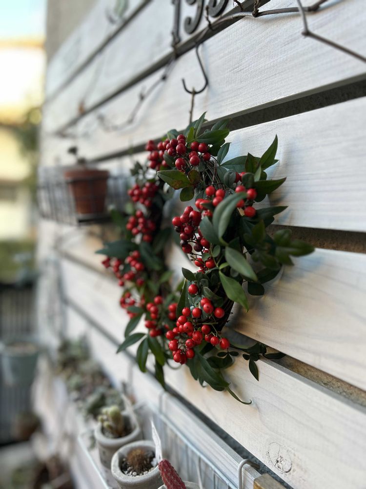 定番のドライリースもいいけど、フレッシュで華やかさのある花のリースもステキ!