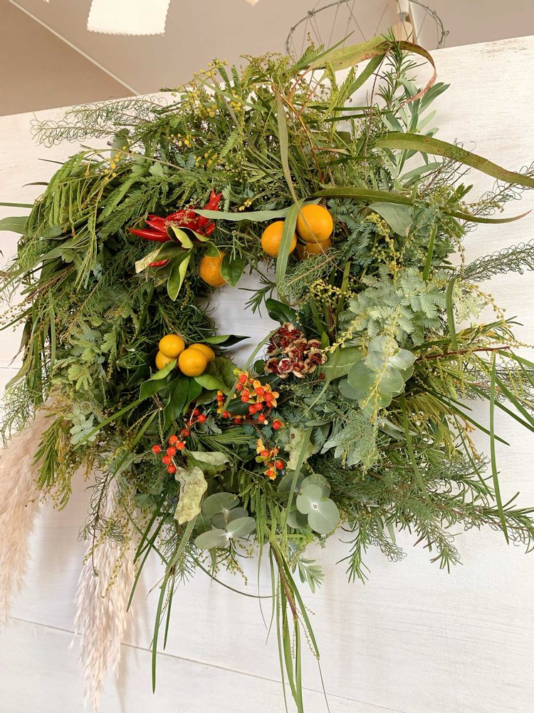 定番のドライリースもいいけど、フレッシュで華やかさのある花のリースもステキ!