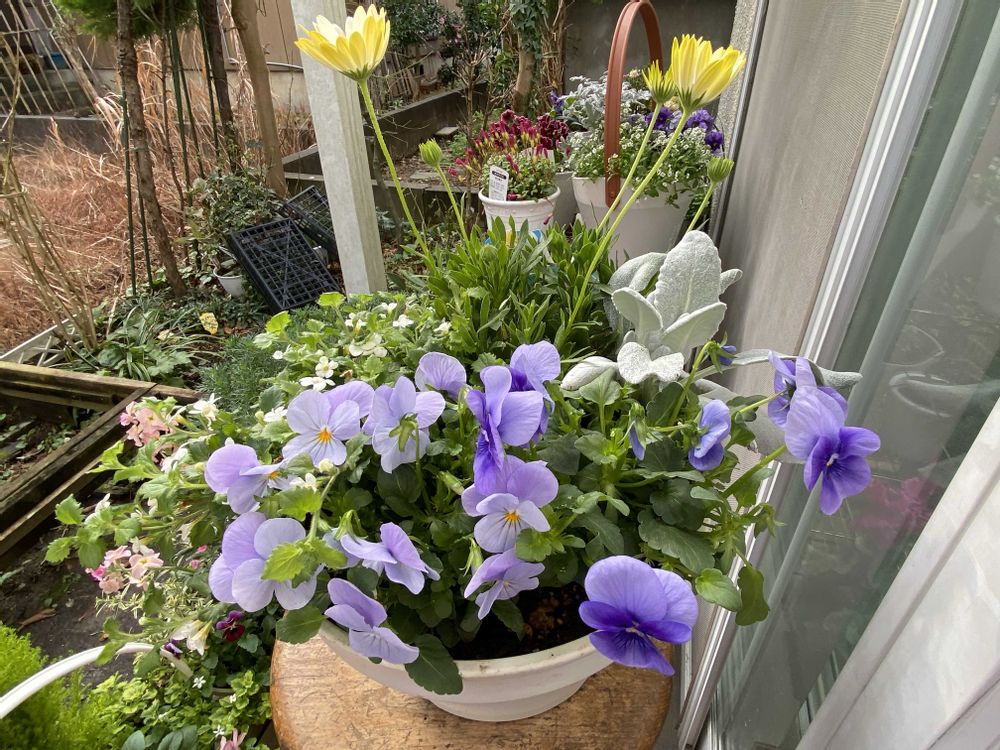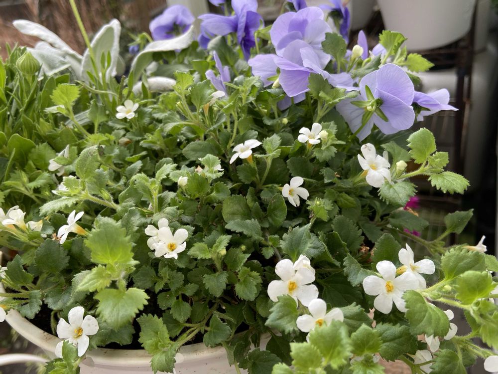 エンジェルウイングスとバコパさんとで、冬の爽やかな寄せ植えにしました🤍💙