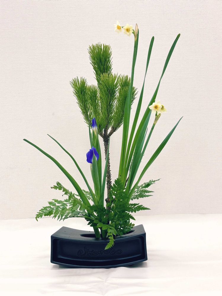 水仙さんとアイリスさんのスッとした姿が松と合っていい感じに仕上がりました😊🎶