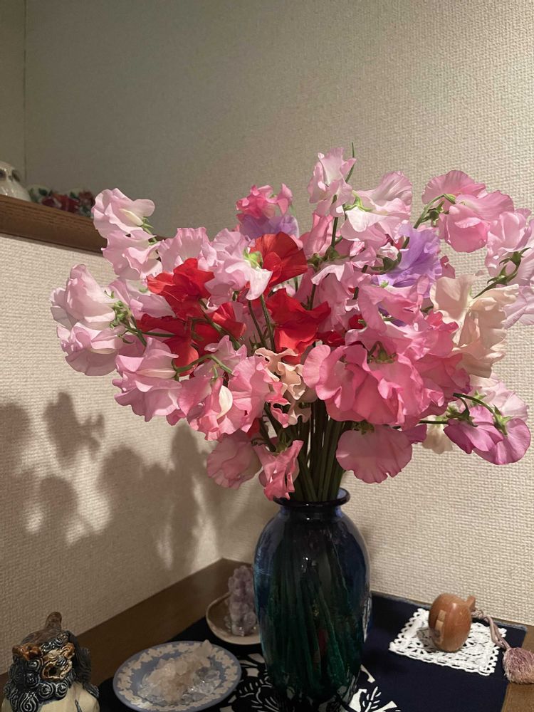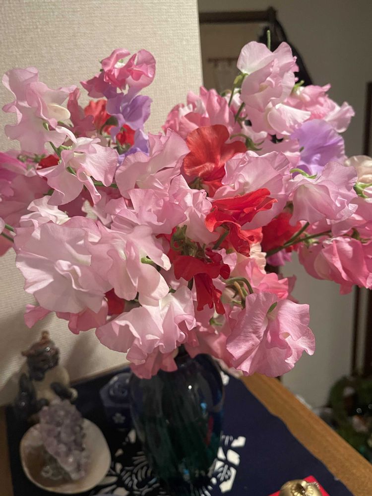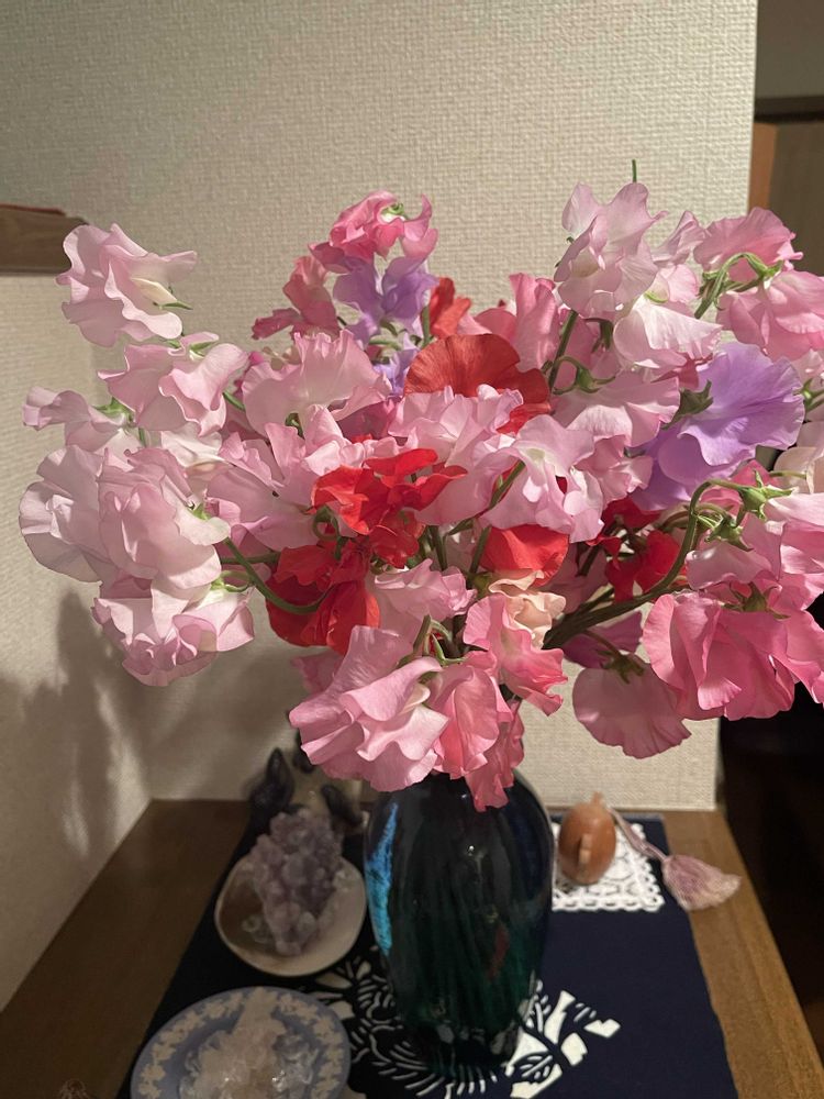 うちの奥さんがまたスイートピーをいけてくれました♪🙏🙇♂️😊✌️🙆♂️スイートピー華やかで花持ちもいいしいいですね😊✌️👌