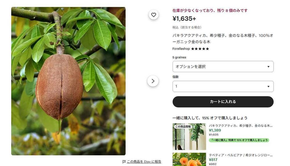 パキラ・アクアティカの種子を販売されているのを見つけたのですが、