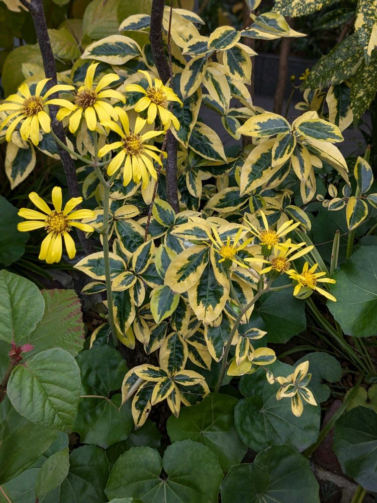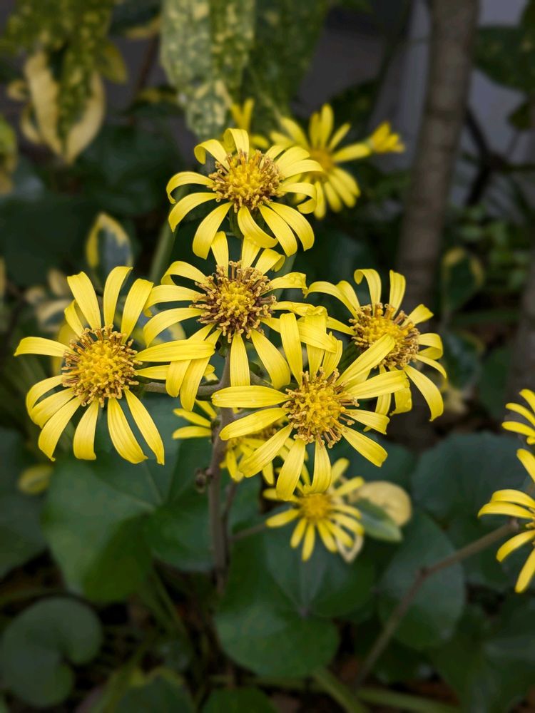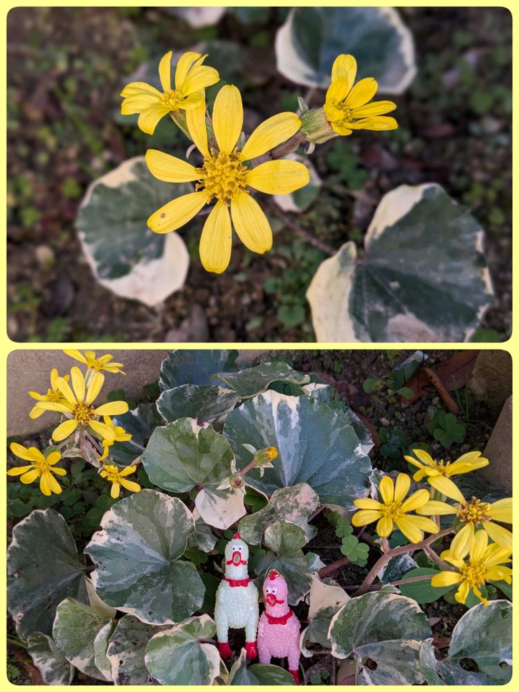 ⑤斑入りツワブキさん❣️うちのツワブキさんも咲き始めたよ〜✨٩(>ω<*)وヤッタ~!!
