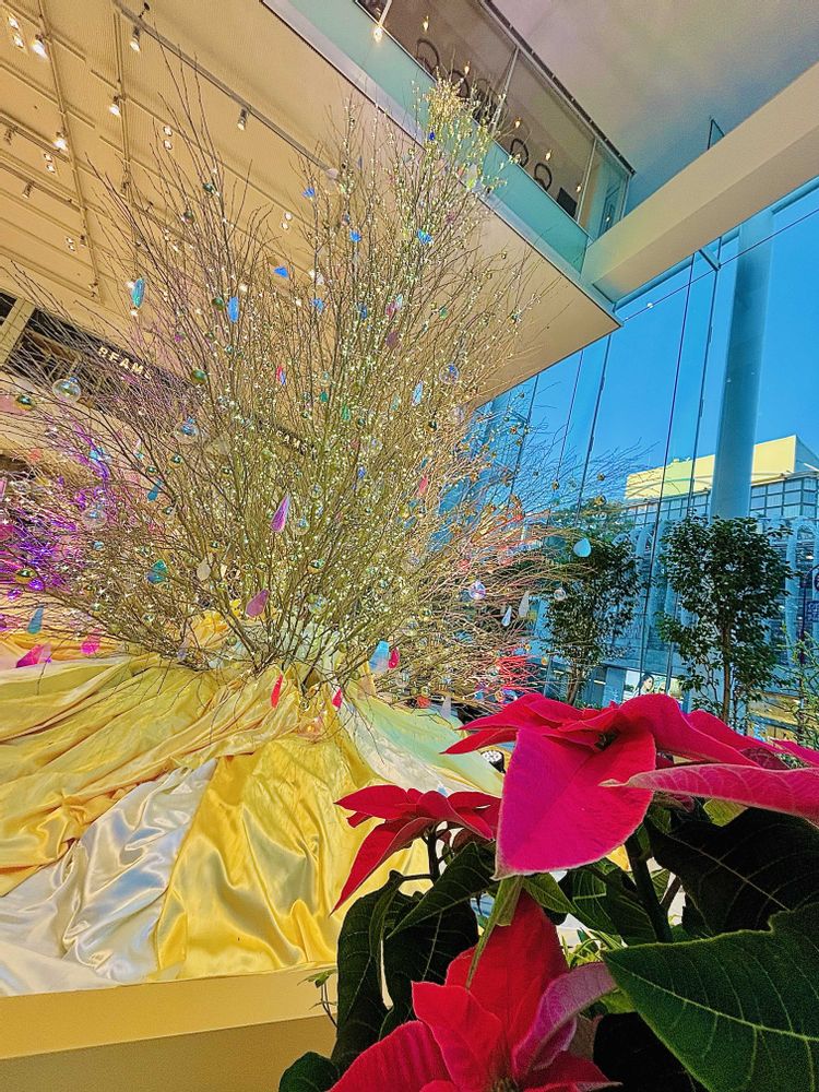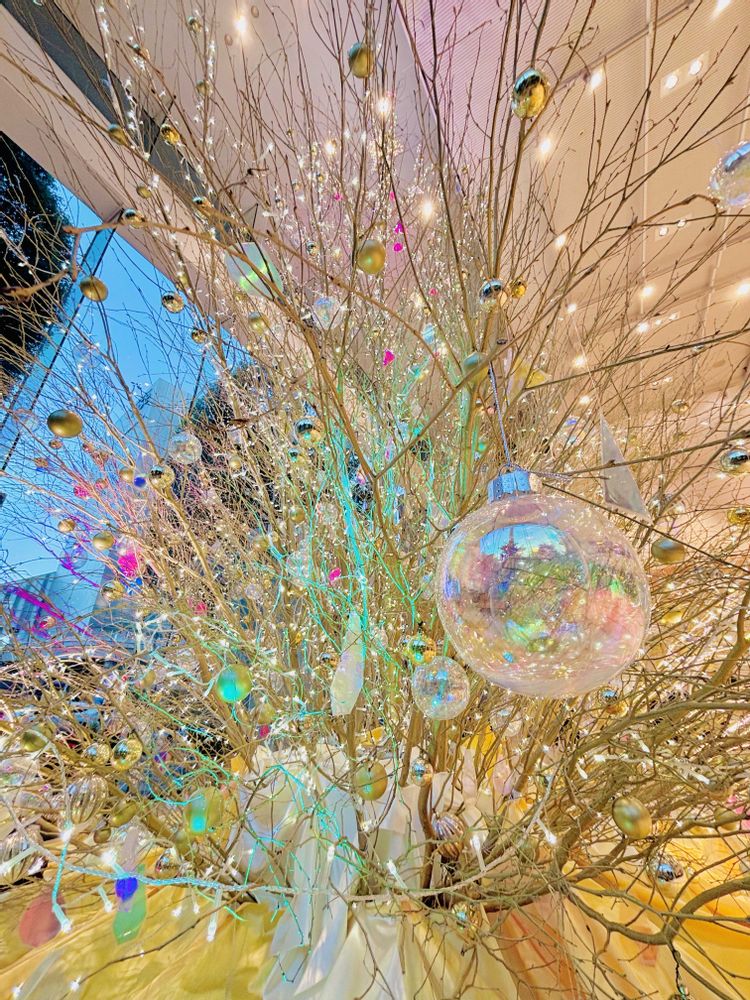高さ約7メートルの「オーロラツリー」は、見る角度によって光の反射が異なり、オーナメントによる煌めきと多様なカラーが美しい✨キラキラ✨