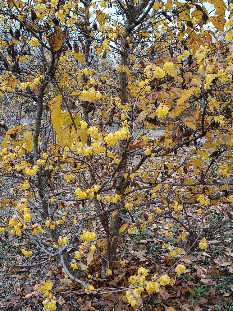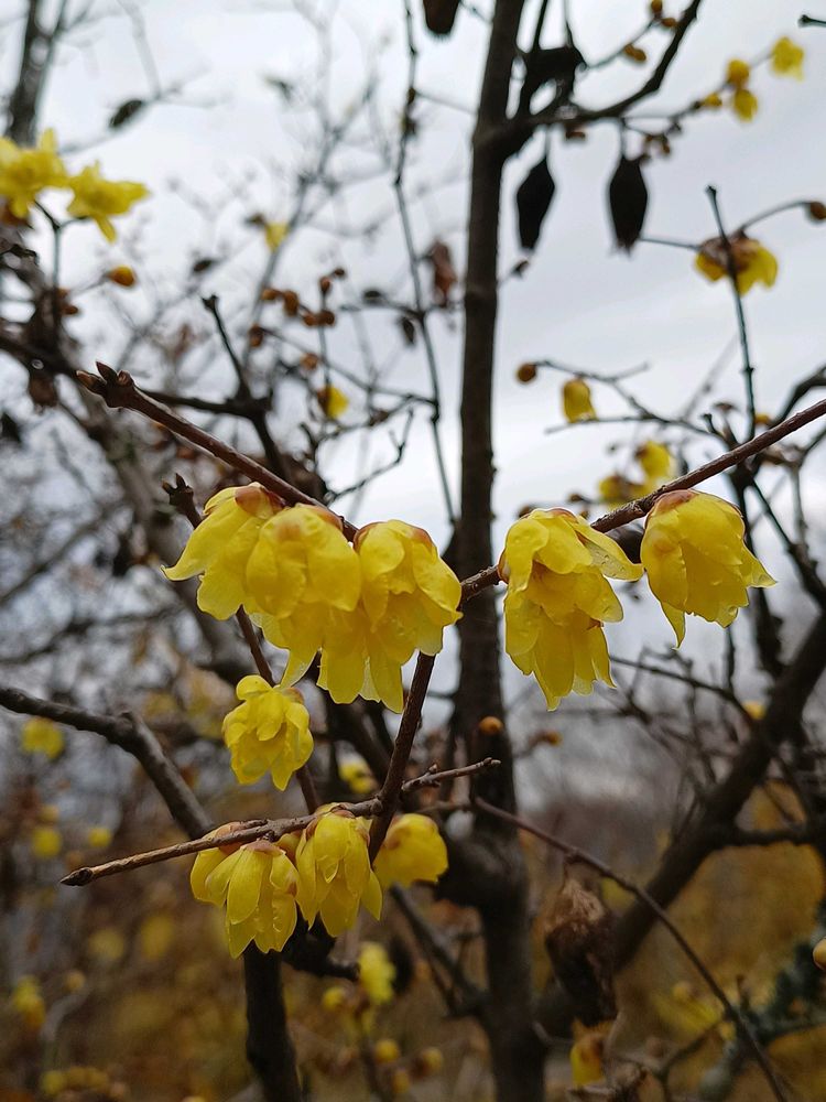 今年は12月が暖かなので満開の蝋梅の木もありました。