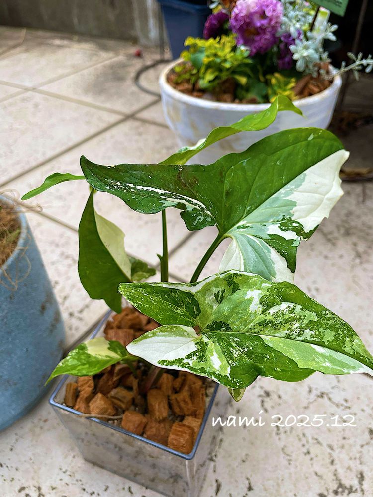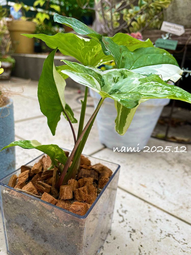 今回は斑入りの葉が可愛い"シンゴニウム・フレンチマーブル"を希望しました🌿