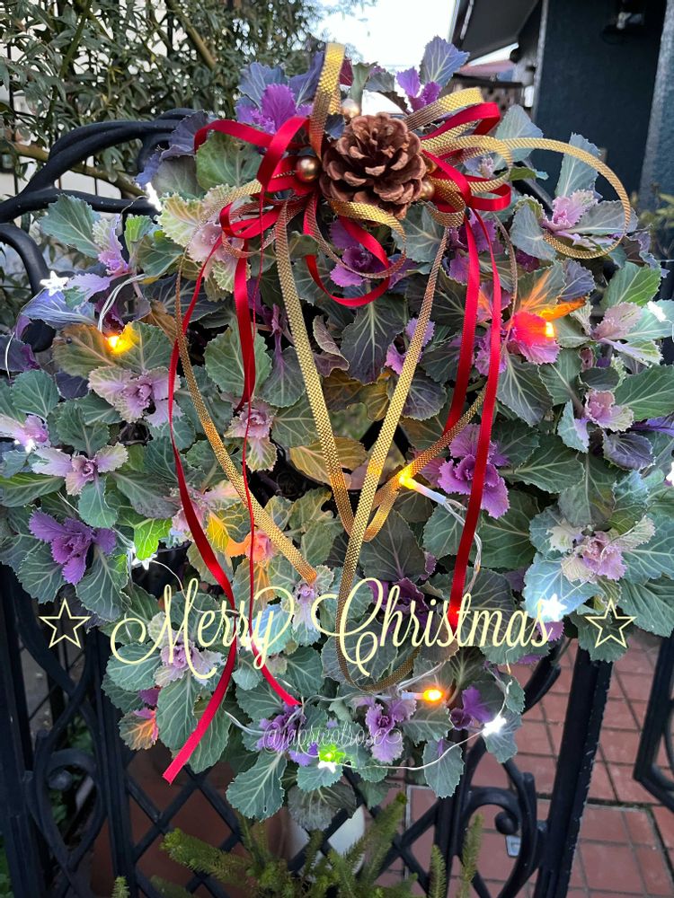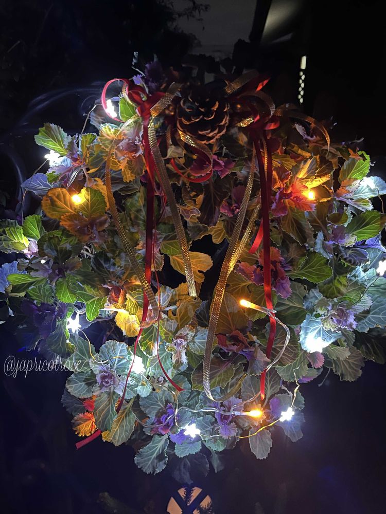 ライトアップされた葉牡丹リース、華やかで素敵です😍