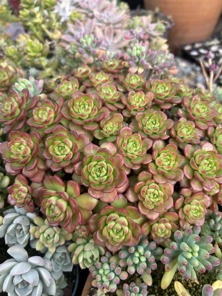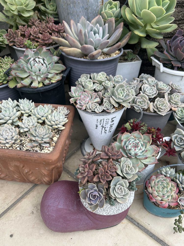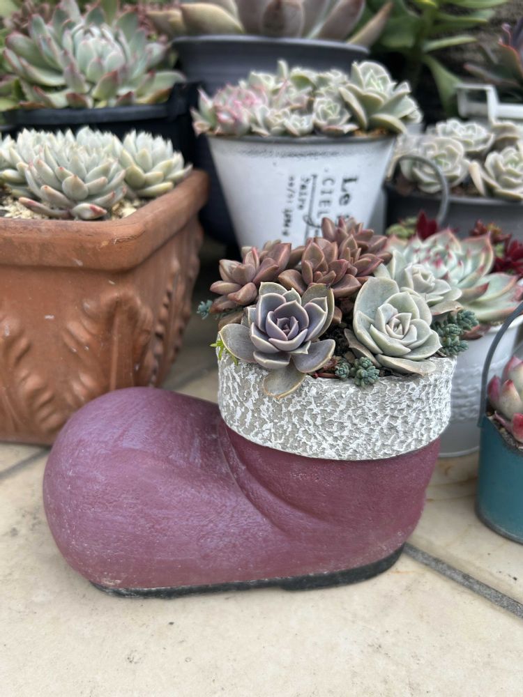 寒さに当たり、ブーツ鉢周りの多肉たちもパリッとしてきました。