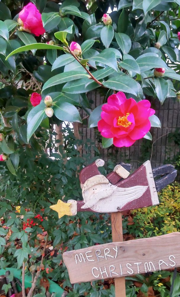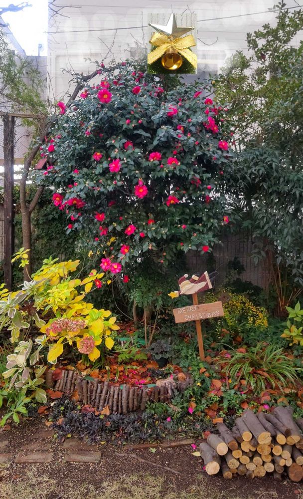 毎日のサザンカ探しの後のクリスマスイブにご自宅のサザンカ🩷