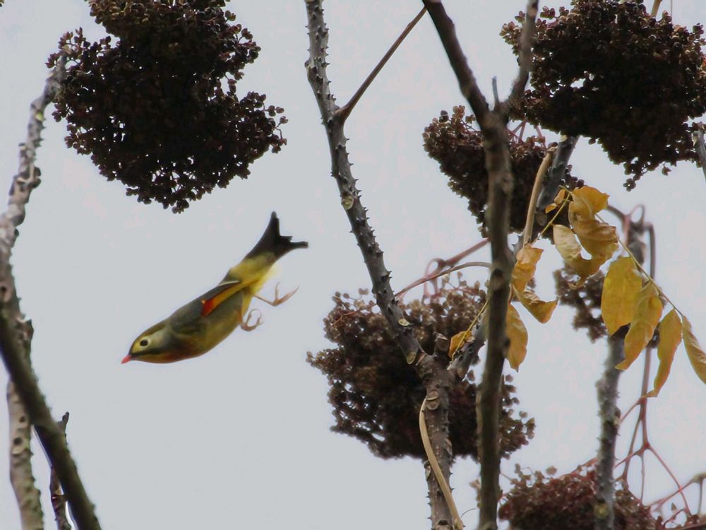 鳥さんはセンダンかハゼノキかわからないけど実が好きなんだね