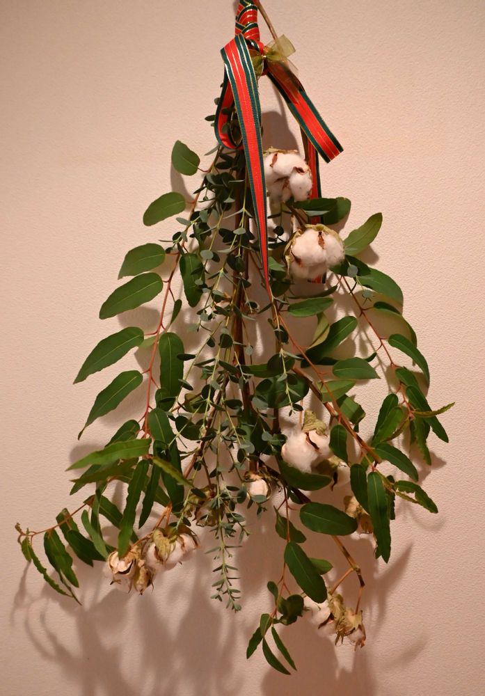 お家で大きく育ったレモンユーカリを使って綿とユーカリグーニーを一緒にまとめてみました♪素朴ですがレモンユーカリの香りが、家の中に広がっていい香りを楽しめます🌿✨️✨️(*˘︶˘*).。.:*♡